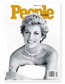 This tribute cover was printed after she was killed in a car crash in August 1997. Princess Diana was featured on the cover of People over 52 times. She married Prince Charles in 1981 and became one of the most famous women in the world. For this cover she is shown in a classic pose and elegant dress and crown. No text was needed for this cover as the powerful black and white photograph adds to its timelessness.