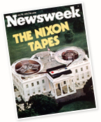 The White House was creatively converted into a huge tape recorder for this 1973 Newsweek cover entitled The Nixon Tapes. President Nixon had been secretly recording everything from phone conversations to office talks for over 2 years. He was proven to being involved in the Watergate Scandal cover-up after the release of the Smoking Gun tape. Nixon resigned in 1974 and was pardoned for all crimes by President Gerald Ford.